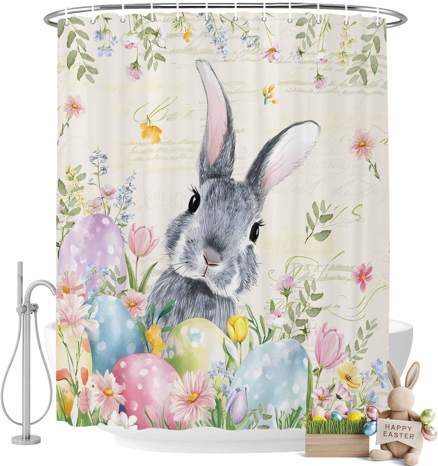 HELLOWINK EASTER SHOWER CURTAINS Bring the joy of spring into your bathroom with HELLOWINK Easter shower curtains. Inspired by classic Easter elements and fresh seasonal colors, this shower curtain adds a cheerful, warm, and inviting atmosphere to your space. Soft pastel tones, playful holiday details, and elegant patterns work together to refresh your bathroom for the Easter season and beyond. Product Details The water-resistant surface helps keep water inside the shower area and provides reliable privacy. It is suitable for daily use in busy households and works well in bathrooms, apartments, dorms, and vacation rentals. This set includes one Easter-themed shower curtain and 12 plastic hooks for easy installation. 36"x72" = 91x183cm 48"x72" = 122x183cm 60"x72" = 152x183cm 72"x72" = 183x183cm 72"x84" = 183x213cm Festive Easter Design The Easter-inspired design features charming spring motifs such as bunnies, eggs, florals, or pastel patterns that instantly brighten your bathroom. Whether used in a master bath, guest bathroom, or holiday home, this curtain creates a joyful seasonal look while still feeling tasteful and decorative. Tip Please allow slight size errors due to manual measurement. Due to monitor, camera or other factors, there may be a slight color difference, please refer to the actual product.